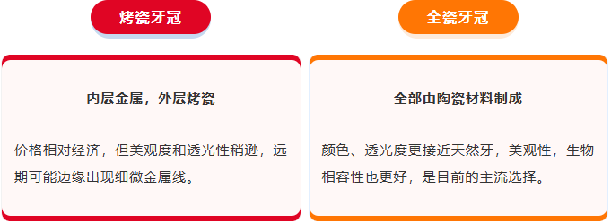 牙冠是露在外面的“门面”,直接影响美观和咀嚼感受。主要分为两种: